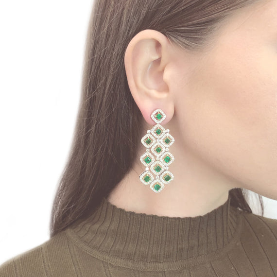 - Handcrafted 18 karat white gold chandelier earrings.